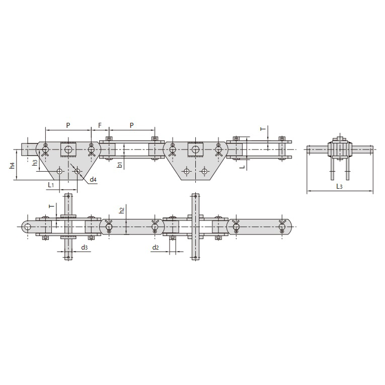 - يمكن ضبط مسافة السلسلة حسب الحاجة، اعتمادًا على قوة أسنان العجلة المسننة وصلابة لوحات السلسلة.