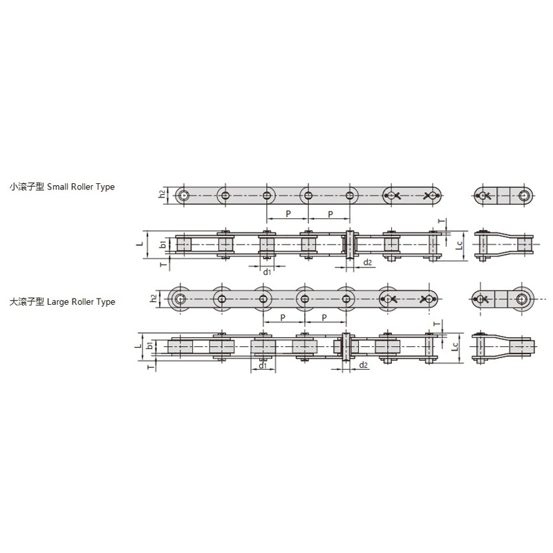 • زيادة المسافة بين الحلقات:الخطوة هي ضعف خطوة السلاسل القياسية، مما يعزز توزيع الضغط ويطيل عمر السلسلة.