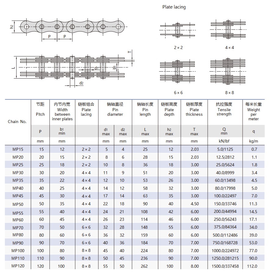 سلسلة دبوسية متعددة الألواح للرافعات الشوكية والرافعات المكدسة